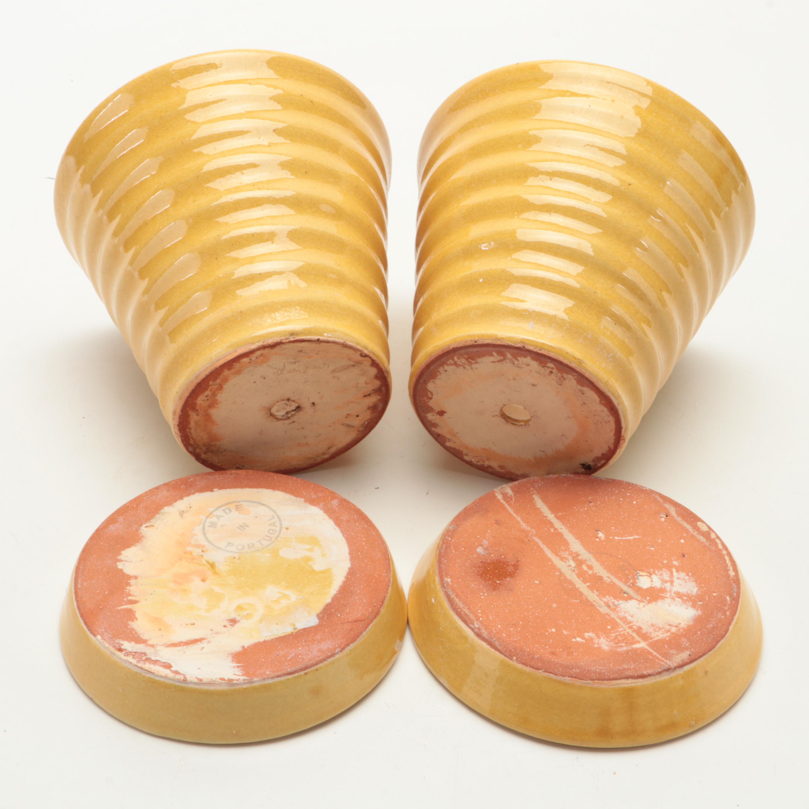 Pottery Barn Yellow Glazed Portuguese Ceramic Planters EBTH